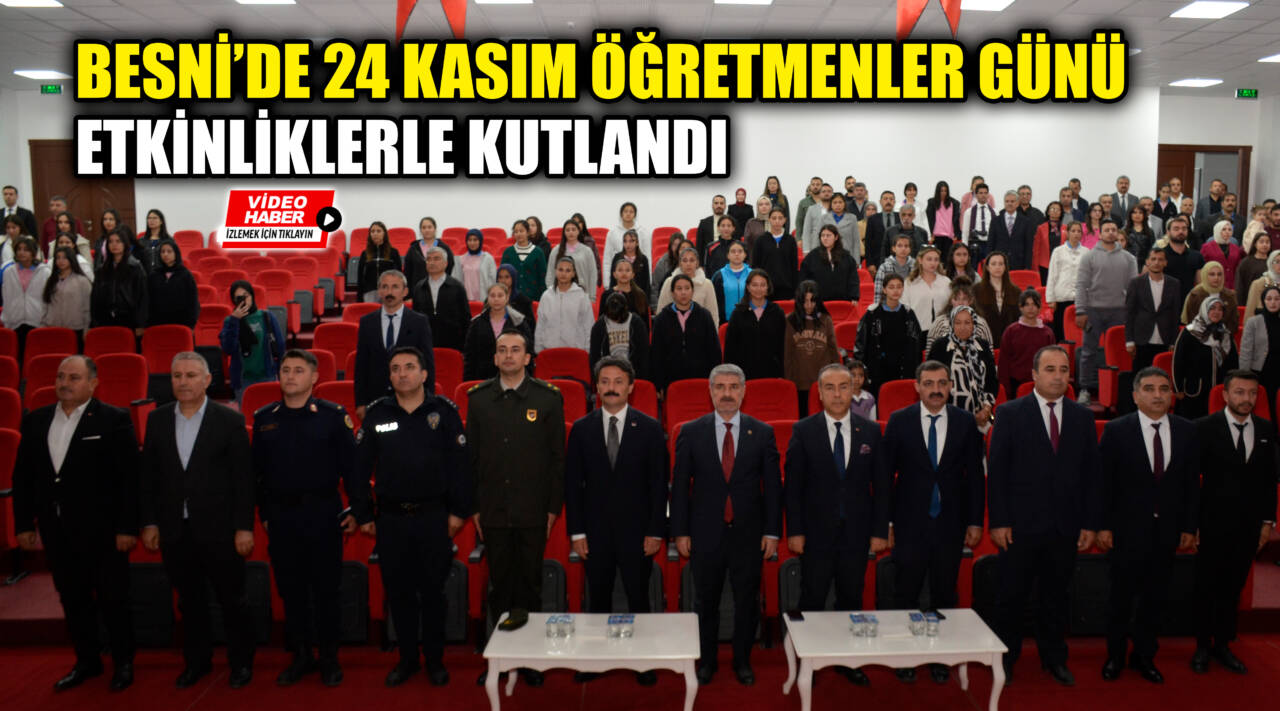 Besni’de 24 Kasım Öğretmenler Günü, Hükümet Konağı önündeki Atatürk Anıtı’na çelenk sunulmasıyla başladı. Ardından etkinlikler, Recep Tayyip Erdoğan Kongre ve Kültür Merkezi’nde devam etti.
